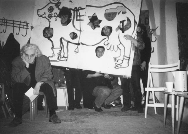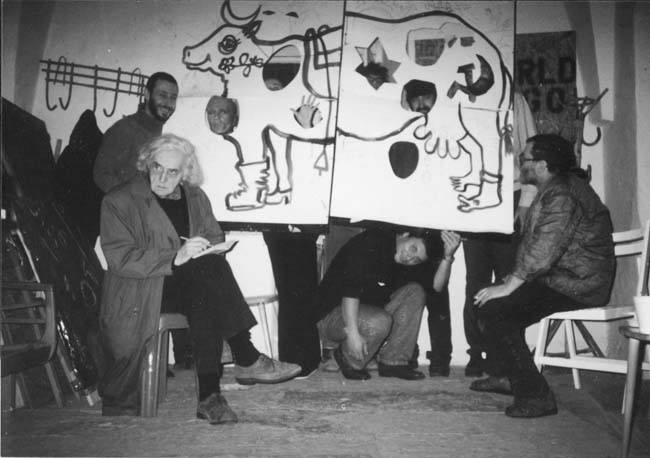 Савелий Гринберг, Израиль Малер, Олег Шмаков, Галина Блейх, Григорий Коэлет (Капцан), Дмитрий Сливняк, Некод Зингер, Гали-Дана Зингер в Trouble Space Studio на ул.Пророков в Иерусалиме. Хэппенинг после вечера журнала «ИО».