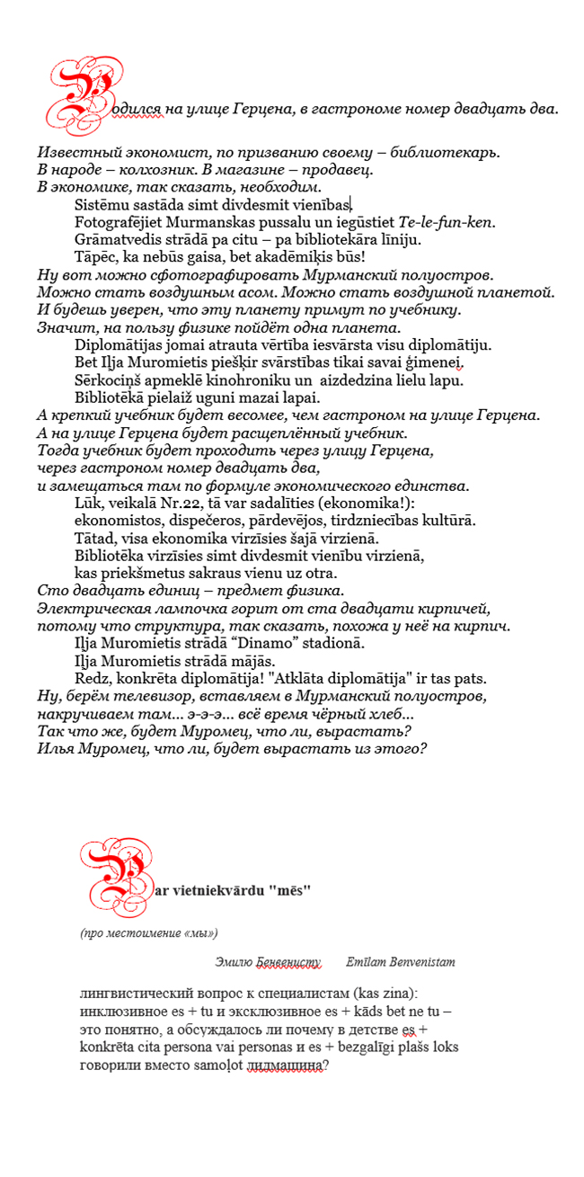 На латышском, иногда – на латгальском, реже – по русски, еще реже – на английском, и сверх редко – на бурятском и белорусском.