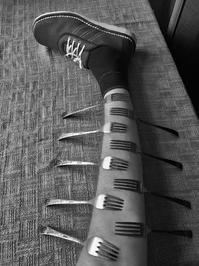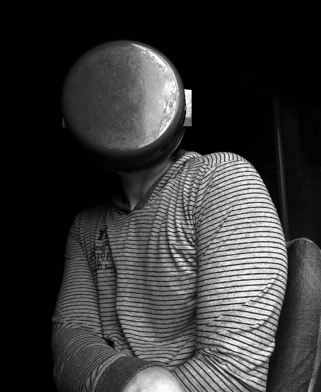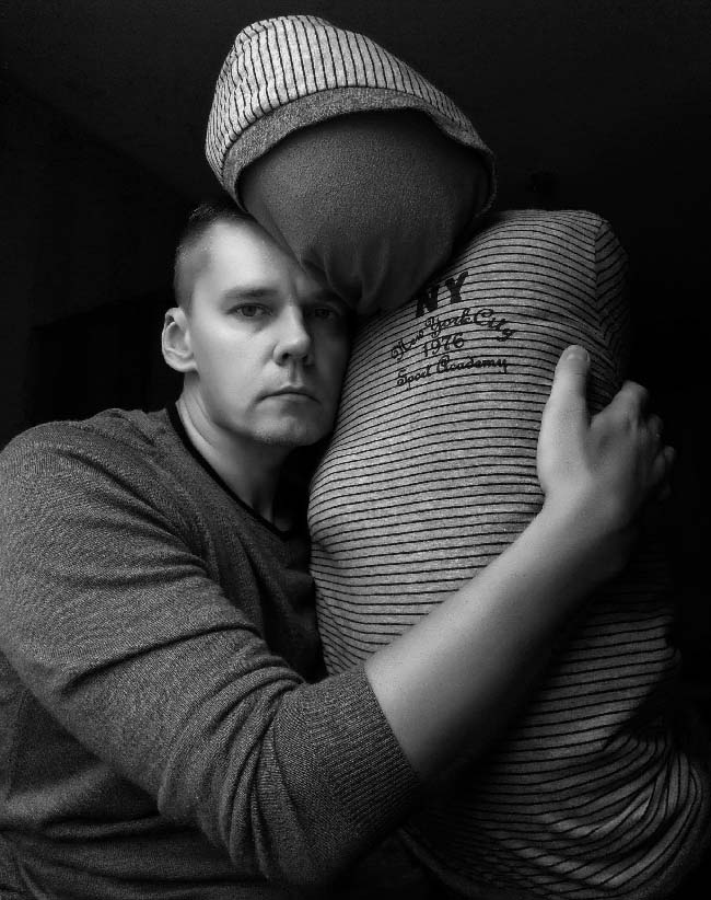 Фотография даёт возможность взглянуть на себя со стороны и ужаснуться. Автопортрет даёт возможность взглянуть на себя со стороны и ужаснуться дважды, ведь ты ещё и сам это запечатлел. Таймерное селфи является своего рода артовой терапией, визуальными ответами на болезненные вопросы: а таким ли я хотел себя видеть?, а что со мной стало?, а как я до такого дошёл?, а кто меня до такого довёл? Фотокнопка есть точка бифуркации, после нажатия которой многое или что-то меняется. Селфический щелчок — это звуковая констатация чуть ли не нарциссической влюблённости в самого себя, когда ты за мгновение до нажатия понимаешь, что твоё отражение в экране устраивает тебя. Казалось бы, автоснимок есть всего лишь символическое выражение собственного бэкграунда посредством разноцветных пикселей, упорядоченных определённым образом, но не только. «Подразумеваемые лица» требовали делать половину таймерных селфи вслепую. Задача трудная, поскольку после нажатия фотокнопки нужно было за 15 секунд повернуться спиной к объективу, сидя в инвалидном кресле, или чем-то закрыть глаза (кроссовки в зубах, кастрюля на лице, майка/штора/мешок на голове), ровно уместиться в рамке кадра, занять при этом эмоционально нагруженную позицию и окаменеть от объективного взгляда горгоны по имени гаджет. Понадобилось много дублей, но они стоили того, чтобы в очередной раз показать независимость эмоции от выражения лица, многоликости от мимики, воображаемого от видимого, света от тьмы. Традиционно в автопортретах главная роль отводится голове. И можно ли в таком случае считать полноценным автопортретом изображение, где в центре внимания спина, живот, шея? Можно ли считать автопортретом изображение одной только ноги? Думаю, да, поскольку человек состоит и из «второстепенных» частей тела, которые в качестве основных фотообъектов как будто бы обретают суверенитет, пусть и статический. Роль предметов интерьера в кадре тоже переоценить невозможно. Иной раз она главная, когда какая-нибудь неодушевлённая вещица перетягивает одеяло на себя, высасывая из центрального субъекта всю его витальность. Мой же замкнутый и задыхающийся фотосубъект является визуальным криком из наждачного мрака настоящего, которое точнее определяется как ад. И я уже не фотографирую самого себя, а лишь фиксирую то, что от меня осталось, но и этого хватает для надежды, ибо сейчас остаток больше целого.