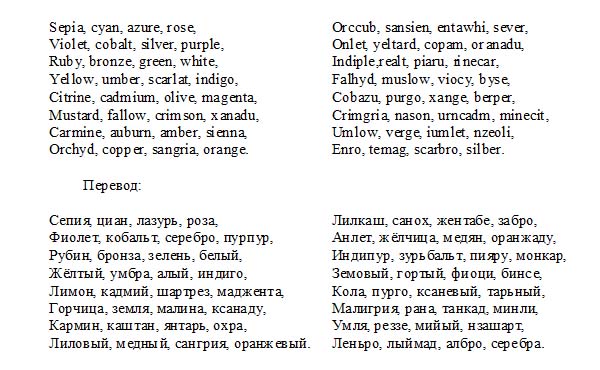 Моя мать сердится на меня и хочетъ наказать меня, за то что я выливаю чернила на столъ когда я gишу. — Нашъ учитель посылаетъ меня къ тебѣ, чтобы спросить тебя, зачѣмъ ты не идешь въ школу вотъ уже три дня. — Я прошу тебя помочь мнѣ когда я заучиваю мои уроки, ибо я боленъ сегодня головою. — Я не знаю чѣмъ помочь тебѣ, а также не хорошо помогать ученикамъ когда они учатся, и нашъ учитель готовь наказать насъ, когда мы помогаемъ другъ другу. — Всѣ знающiе васъ говорятъ, что нѣтъ во всемъ городѣ такихъ лѣнивыхъ мальчиковъ какъ вы, а вы еще сердитесь на насъ, за то что мы говоримъ это (=какъ это слово). — За то что вы кушаете всегда (вы) одни ваши яблоки, вы должны теперь также одни заучивать ваши уроки, и мы не думаемъ помогать вамь когда вы учитесь. — Маленькая дѣвочка кричитъ изо всей (ея) силы, ибо ея братъ беретъ ея яблоко, и онъ кушаетъ его, не спрашивая ея. — Вотъ я посылаю тебѣ, мой дорогой другъ, черезъ этого мальчика книгу, которую ты просишь (отъ меня). — Зачѣмъ ты не идешь, моя дочь, къ твоей тетѣ (чтобы) освѣдомиться о ея здоровьи? Я теперь очень устала, моя добрая мать, но я пишу ей письмо и я посылаю его къ ней черезъ моего маленькаго брата. — Нельзя посылать писемъ черезъ него, ибо онъ еще малъ и онъ не умнетъ (знаетъ) беречь ихъ. — Мои сестры очень любять своихъ подругъ, и онѣ идуть одна къ другой 7 разъ въ неделю. — Когда я думаю послать тебя въ садъ, ты лежишь на своей кровати. — Чернила не черны и нельзя писать ими; кто льетъ воду вь чернила? Наша маленькая сестра льетъ всегда воду въ чернила когда мы учимся въ другой комнатѣ, и зато я сержусь на нее и думаю наказать ее. — Сторожъ вашего сада есть злой человѣкъ, ибо онъ наказываетъ насъ всегда, когда мы кушаемъ яблоки и когда мы срываемъ цвѣты, не спрашивая его. — Если такъ, онъ хорошiй сторожъ, ибо онъ стоитъ въ саду для того чтобы стеречь его. — Мы слушаемъ (нашими) ушами и ходимъ (нашими) ногами.