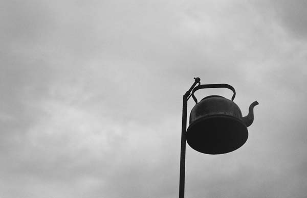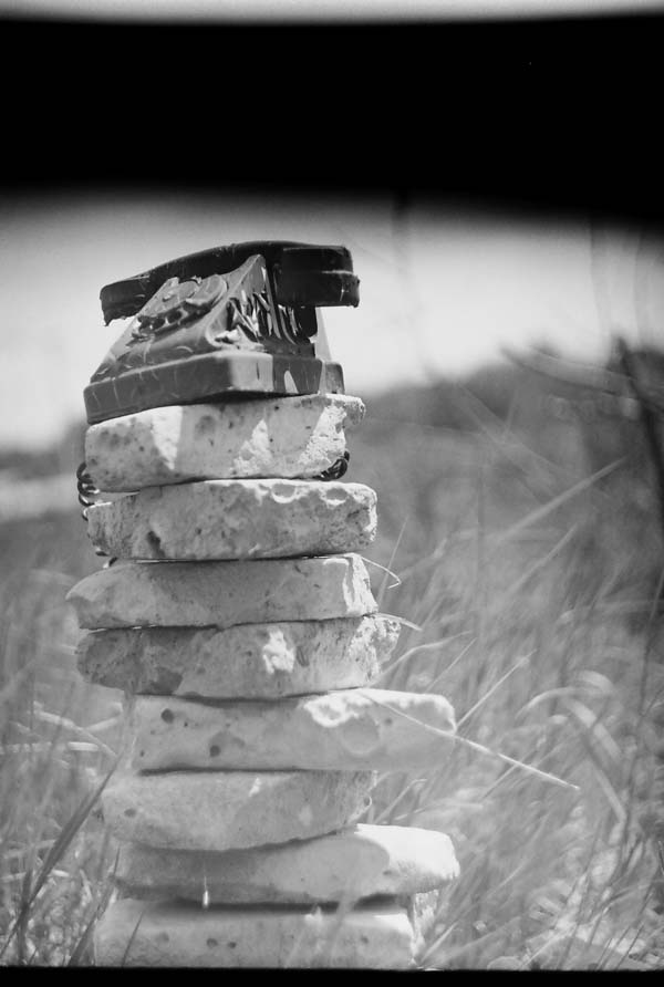 (деталь старого неподвижного телефона; подвешена на проводе, который до этого использовался в других устройствах (аппаратах))